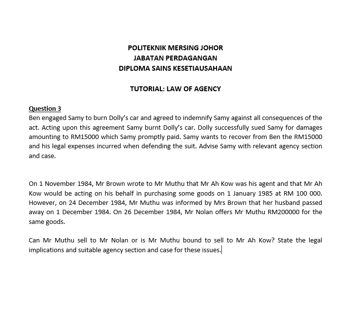 Solved Politeknik Mersing Johor Jabatan Perdagangan Diploma Chegg Com